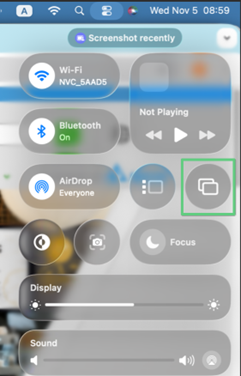 The MacOS version 26.1 has changed the method of Airplay screen projection. Please follow the instructions to project your screen through airplay.