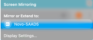 Step 1: Go to the top-right corner and click the Wi-Fi icon. Ensure your Macbook’s Wi-Fi settings and the NovoConnect device are on the same network, or directly connect to the NovoConnect hotspot(e.g., the NovoConnect device name is NVC_5AAD5)